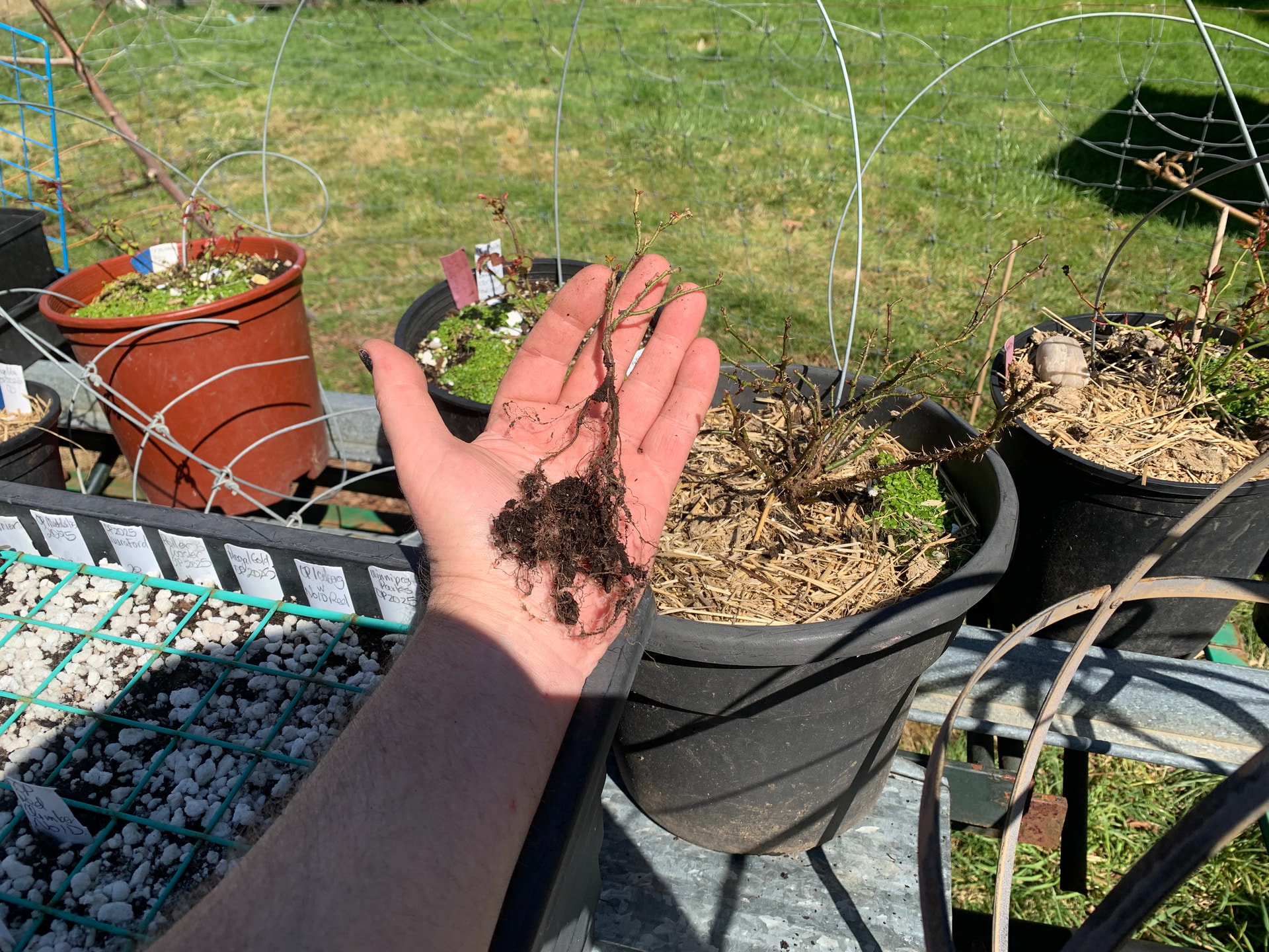 This sibling hasn’t bloomed yet, but it was well-rooted into the one-gallon it’s in in this picture, so I moved it up to a two gallon day before yesterday…?