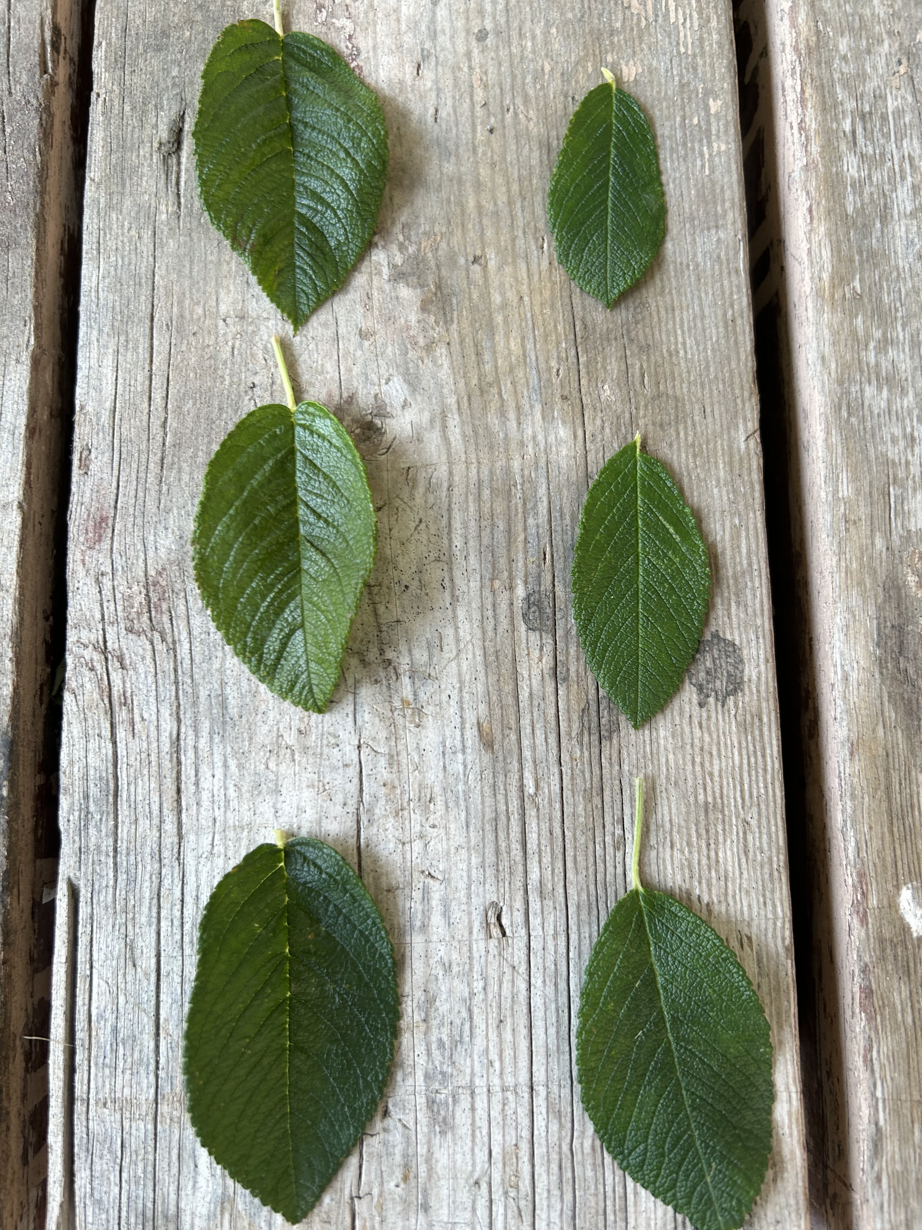 Three representative leafs from “Hansa” front yard on left, and “Hansa dark flower” on right.