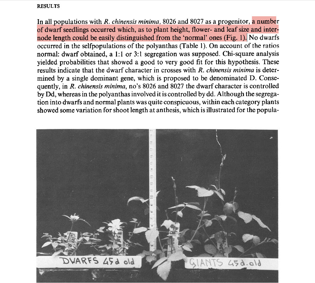 Another question, in many pedigrees of miniature roses, the miniature trait seems passed via miniature pollen parents, despite one founder of this type, ‘Tom Thumb’ get this trait from its seed parent, ‘Rouletii’. So does it means miniaturism is much easier to pass by pollen rather than ovary, or just for other reasons?