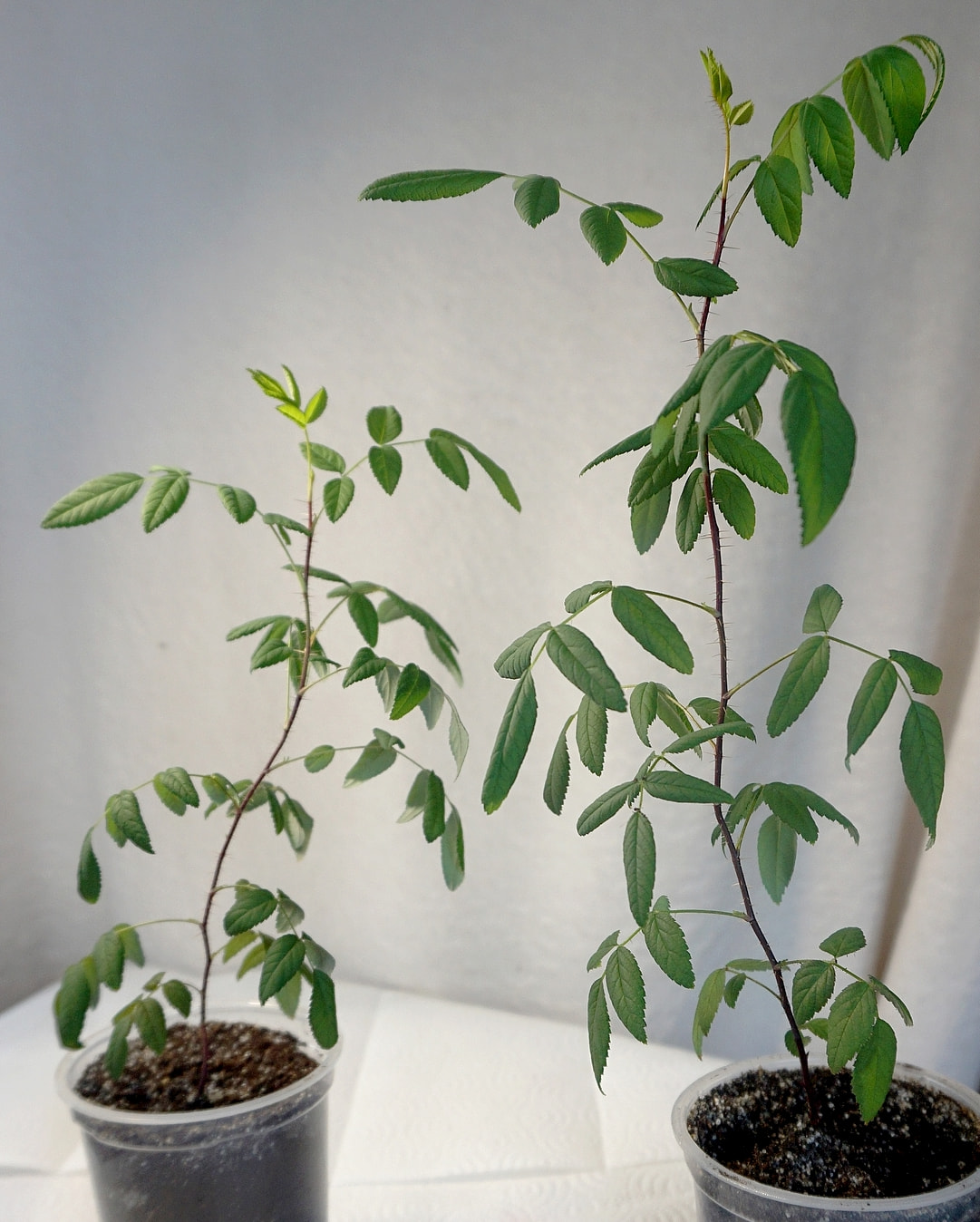 Latter young one showing more of the hardy traits of the pollen parent, brown canes and no âthornyâ character.