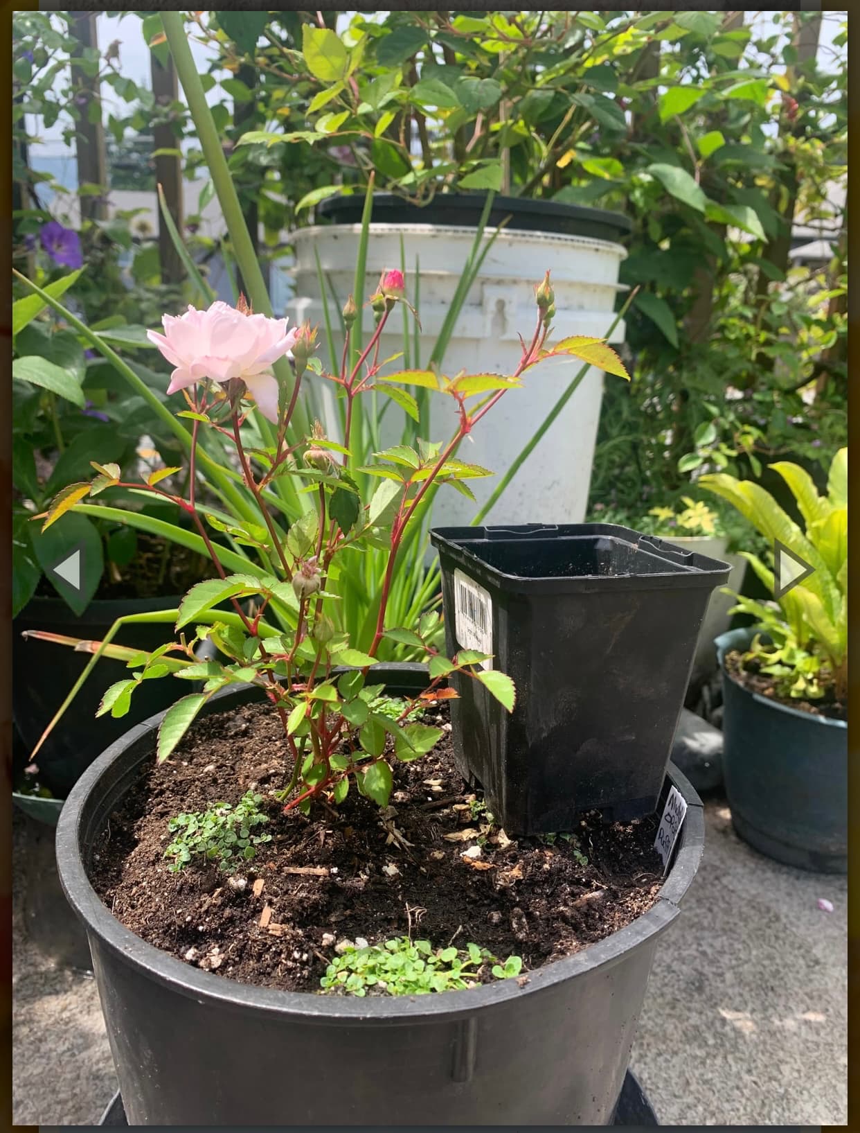 The second bloom has opened during a minor heat-wave, and is significantly smaller and paler, almost white. Boo!? Still keeping it. For now.