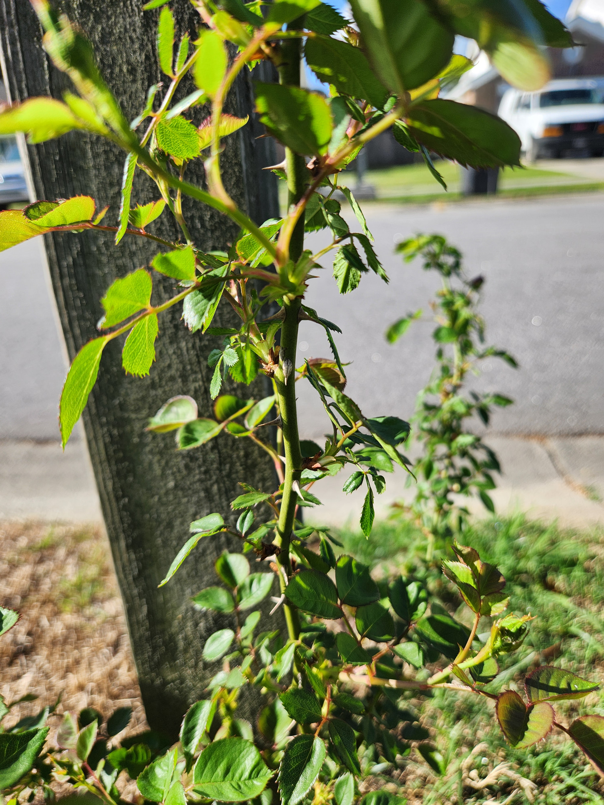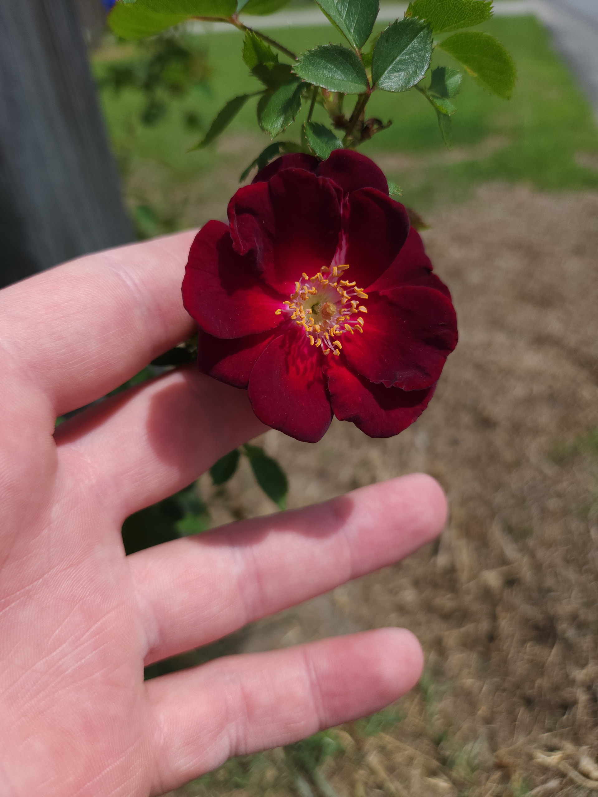 I am writing to ask opinions on this plant. Originally I had planted a rosa gallica officinalis on a rootstock from David austin roses next to the mailbox. The whole plant died, I expect from the neighbor using roundup to keep her lawn pristine. I ripped the whole thing out of the ground. It was in a raised mini-bed that I completely removed, then last year this thing popped up next to the mailbox. I wondered if maybe it was from the rootstock sending up something from left over roots and this is what it is? I hear Dr. Huey is a common rootstock used by DA, but looking at pictures, this doesn’t look perfectly like a dr. Huey. I also wouldn’t discount the possibility of some rogue rose hips getting turned into the soil when I ripped up the plant. Thoughts?