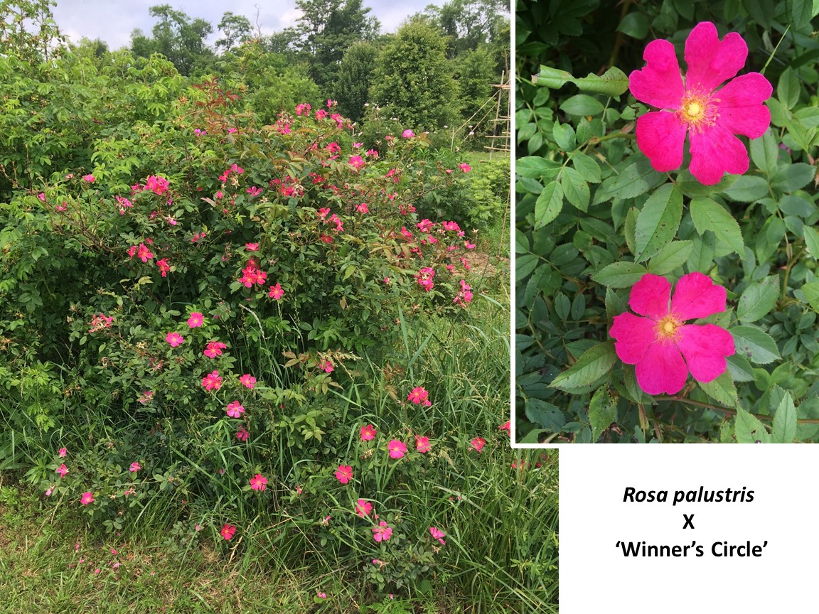 blooming roses in its pedigree. [palustris, virginiana, carolina along with ‘Winners Circle’ and ‘Fragrant Cloud’]
