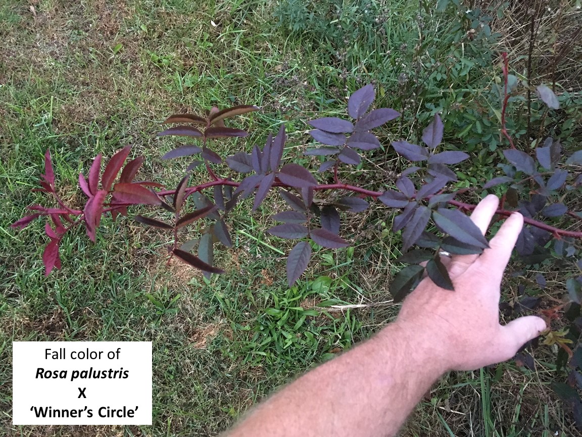 Actually ‘Winners Circle’ itself develops very nice purple Fall foliage color. That’s one of it’s nice features. This particular palustris seedling lets that feature come through in full force. There were a few siblings and these weren’t quite as vigorous and didn’t have the nice Fall color. An analogous cross of palustris with ‘Home Run’ also gave a mix of foliage colors. One of them has quite a bit of purple currently, so maybe you’re right that it’s a roll of the dice.