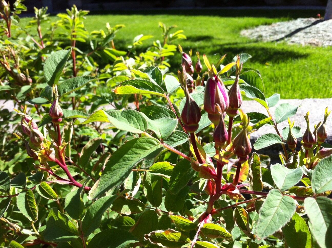 The hardy Canadian rose Therese Bugnet…bred by Georges Bugnet (circa 1941)…can be found on several continents and could be a rose that has passed the test of time. In my area, I’ve seen it planted along golf-course fareways and have even seen it effectively used as a privacy barrier between RV campsites in British Columbia. Along with the great hardy roses Metis and Lillian Gibson, it shares the trait of attractive red stems.