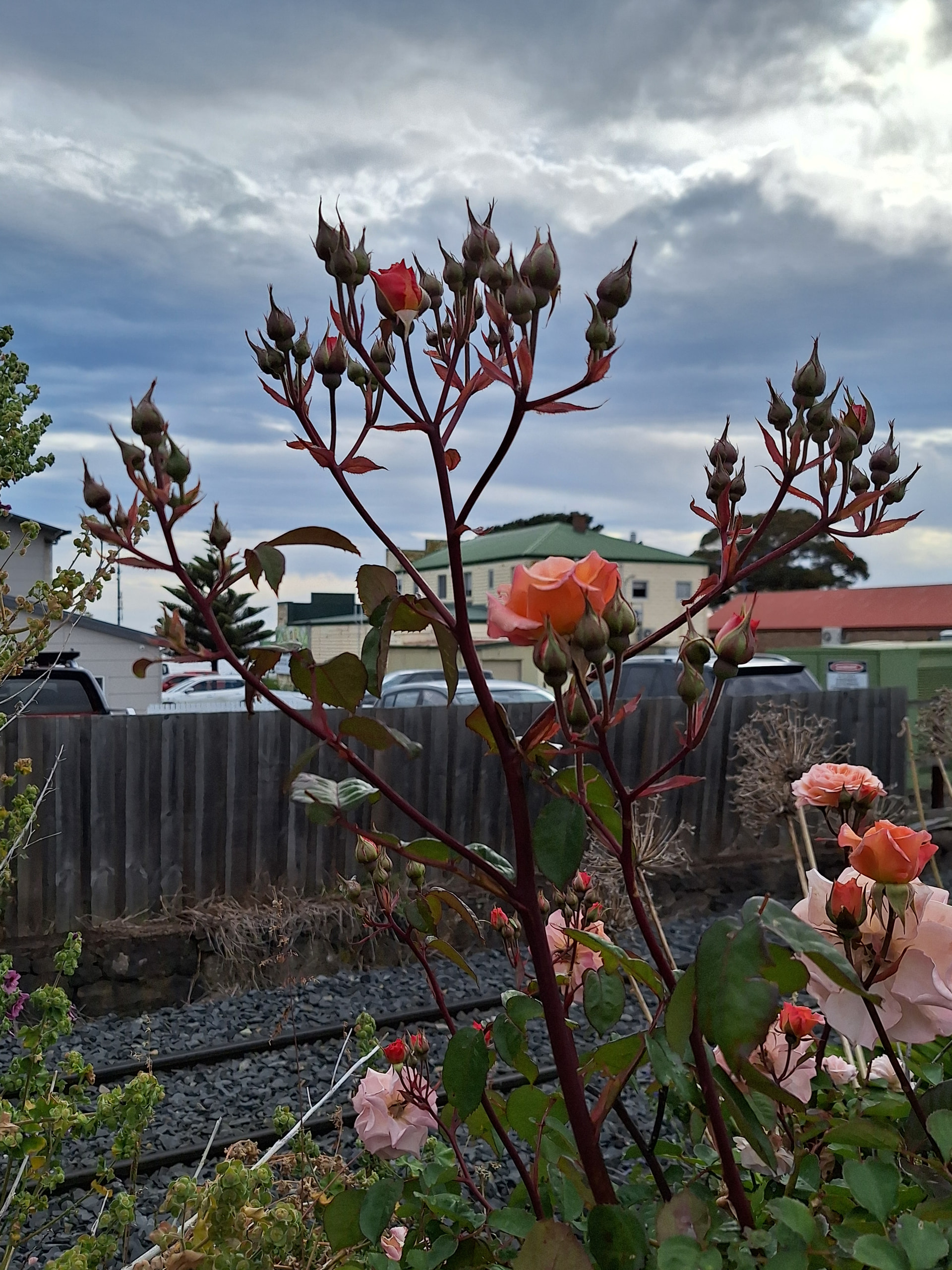Today, while slumming around the railway again… I was fortunate to catch the resident (of 35yr) directly opposite! My notion of it being neglected is way off - when it blooms there is a lot of interest in ‘pruning’ so it is potentially a larger shrub than initially supposed. I now know who planted the rose but not its name . Although inspection uncovered a lot of perished bloom stalks (somewhat self-cleaning?), I have it on reliable authority that it does produce hips (red).